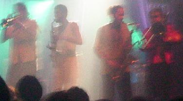 Un concert trop court, qui a débuté sur trois quatre chansons trop brutales, qui a fait pogoter toute la salle, et on était tous serrés, donc pas trop cool. Après, ils ont commencé avec un ska-dub différent de ce qu'on a sur les disques, d'ailleurs il y aura que très peu de chansons des disques. Ca sera très sympa, très remuant, surtout un dub gigantesque de dix minutes sur Warlord, mais il me manquera quelque chose en fin de concert, le petit truc de circus que l'on retrouvera à la fin .. A noter un Humeur de Mèche très singulier qui cloture le concert. A revoir ...
