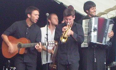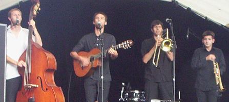 Pitêtre que les circonstances de la découverte furent vraiment jolies, ce qui me fait beaucoup aimé ce groupe .. ou pitêtre seulement que leur musique est tout simplement très belle, et vraiment très alléchante. Leur swing manouche, avec guitare, trompette et tuba fous fous, une voix très agréable, leurs très jolies petites chansons, leur disque qui est un petit bijou, font de ce groupe mes petits chouchous !! Il suffit qu'ils soient bons en concert pour que je me mette à courir dans la rue ..