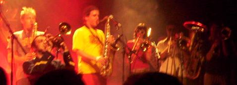 Ils vont charmer tout le public pendant une petite heure, un peu plus avec des trips toujours aussi débiles, des cris de mâles suivis de cris de cris de femelles en rut, et ensuite une parodie de la Guerre des Etoiles, tout ça sous le son éclairé du cuivre, sous l'impulsion des trompettes ou saxo qui se tapent des solos à tout moment.