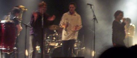 Si bien qu'il n'y a pas vraiment d'entrée sur scène, puisque la moitié du groupe est déjà présente lorsque l'autre moitié arrive, les ingés sons n'ayant même pas encore totalement fini leur boulot, d'ailleurs, les micros ne fonctionneront pas tous très bien, parfois il y aura des instruments qui vont ne pas sonner terriblement.