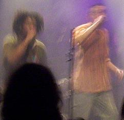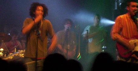 Les sept compères sur scène vont vite être rejoints par un chanteur black, limite reggaeman, j'avais complètement oublié sa présence. Il arrive et prend la place du chanteur principal, et commencera à danser et faire des sons pour rester dans l'ambiance. Il commencera à chanter au bout de la quatrième chanson, en compagnie du guitarriste qui est à sa gauche, celui de droite se satisfaisant de faire des grimaces bien sympathiques et drôles à regarder. Aussi un des trombonnistes qui avait transpercé la foule viendra à l'orgue électrique pour venir mettre un son ska, à la SKa-P.