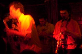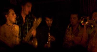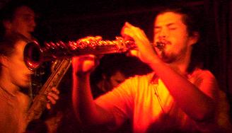 Les morceaux deviennent alors plus rythmés, mieux, le trip de fin de première session recommence après l'entracte, et on est bien dans le concert. La fanfare joue tous ses morceaux, joue bien de sa musique de l'est, Gregoire s'éclate en jouant deux instruments en même temps, un saxophone normal, et son saxo baryton. Ils se font quelques solos, quelques duos, tous les rythmes passent, on entend bien tous les instruments cuivrés .. tous ont le plaisir de se retrouver au devant de la scène, sauf peut-être Manu et son soubassophone encombrant et aussi Jérémie, qui est aussi un peu bloqué.