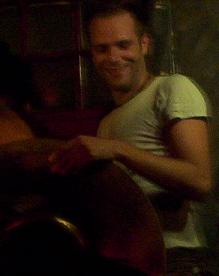 Après une petite heure de concert, les musiciens n'en peuvent plus, fatigués, et il fait chaud, ils demandent une pause au public, qui ronchonne un tit peu, c'était bien quand même, mais c'est un ronchonnement logique, et là, Mathias sort : "mais non, ils ne vont pas vouloir faire une pause", vraiment dédaigneux, pas trop trop plaisant donc ... Bref, nous faisons tout de même un entracte, pendant lequel tout le monde va aller boire un coup.
