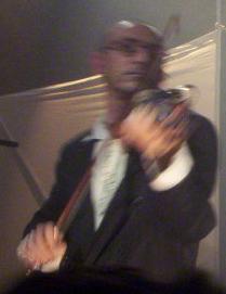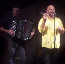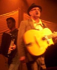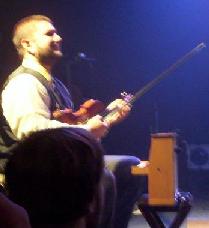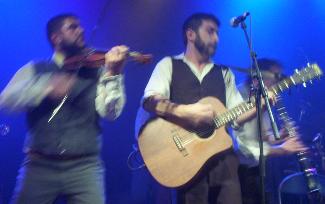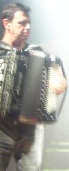 Mais ensuite, ce fut meilleur, ça partait en trip breton, avec un merveilleux violonniste, parlons de lui maintenant, puisque c'est lui qui pour moi est le joyau du groupe, tiens d'ailleurs, ils sont quatre, un guitarriste barbu qui chante, un accordéonniste dont on parlera plus tard, et un batteur au t-shirt jaune qui reste un peu discret. Et bien sûr le violonniste, chauve (oui il l'est). Il bouge énormément quand il joue, et franchement, quand il ne joue pas, les chansons deviennent beaucoup plus chiantes. Il est doué !! C'est lui qui nous a plu le plus dans le concert.