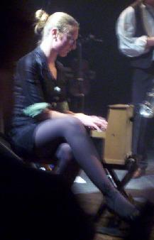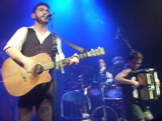 Parlons désormais du guitarriste qui sort des blagues pas très drôle, qui fait tout pour être drôle, mais c'est pas très drôle, même quand il saute du chaise, on exquisse un sourire mais c'est pas tellement marrant. Sinon, l'accordéonniste a poussé le côté comique un peu trop loin, puisqu'il porte le t'shirt de Jonnhy .. et ça choque en début de concert, enfin on matte le t-shirt, et hop on est bloqué, j'apprendrais après le concert que c'était vraiment ironique, mais le doute a pesé sur moi sur tout le concert.