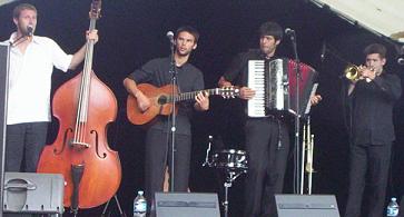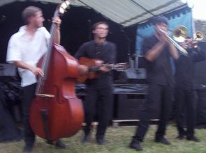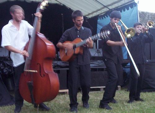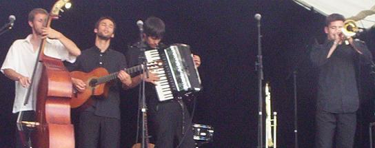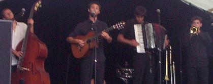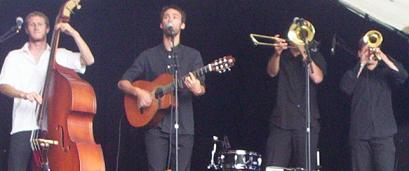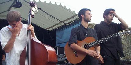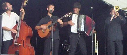 Deux ou trois chansons vont suivre, encore des chansons inconnues du disque, des chansons pendant lesquelles le groupe lance le concert, sans provoquer énormément de bonheur dans un public bien assis à leur table, mais amateur tout de même temps, ça s'entend aux applaudissements en fin de chanson. Le groupe s'inscrit dans son swing manouche, et l'on repère le chanteur du groupe, Maxime, aidé très souvent par Olivier, puis Louich s'est retrouvé jusqu'à la fin du concert avec la contrebasse à la main. Le concert est lancé.