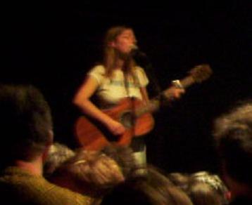 En si peu de temps, elle a réussi quand même à nous offrir une belle petite partie, avec une présence sur scène bien sympathique, elle n'a pas flippé du tout devant tout ce monde. Elle commence (je me souviens !) à dédier une chanson à son père, une chanson sur un mauvais père (ben dis donc !), et va ainsi continuer à chanter en fait la chronique d'une vie désagréable d'une demoiselle.