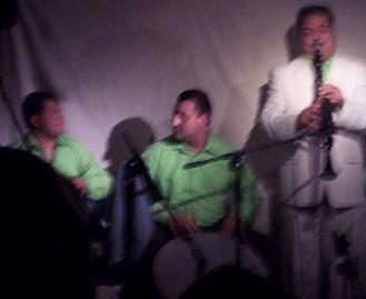Ils sont donc cinq sur scène, Hasan Yarimdünia à la clarinette donc, un violonniste, un mandoliniste, une grosse caisse, et un derbouka. Tous les cinq ont des têtes bien turques, et sont tous bien portants (ils ont un bon bide quoi), du coup, ça fait du beau petit monde sur scène, tous habillés en vert, c'est assez kitch ..