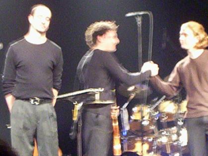 Dans le rappel aussi, on y verra Arnaud venir seul sur scène et nous parler, comme ça, en s'habillant de son accordéon, des intermittents du spectacle, et nous dire qu'il a le droit à 3 minutes rien qu'à lui dans le concert, pendant lesquelles il joue de l'accordéon (le meilleur moment du concert d'après lui), mais malheureusement pour lui, les trois autres viendront plus tôt que prévu ... rahlalalalaaa c'est tristouille.