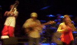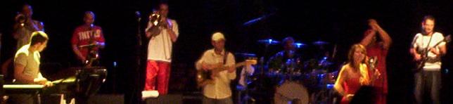 Les K2r continuent leur concert, Dorothée vient s’installer sur le devant de la scène, et commence à nous chanter Don’t make me over, une chanson un peu calme qui va en entraîner d’autres, avec un coup de moins bien dans le concert, après un début totalement explosif, terriblement explosif même. Pendant un quart d’heure, peut être plus, il va y avoir un petit peu de calme, des nouvelles chansons du nouvel album prévu en septembre (K2AirLines (j’avais pas capté le jeu de mot sur le coup)), pas encore au point je suppose, puis il va y avoir une présentation du groupe par quelques solos, dont notamment un solo du saxophoniste.