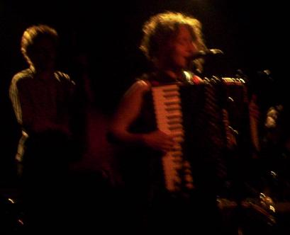 Outre le chanteur, il y a aussi les musiciens qui vont nous jouer de la musique un peu foraine, entraînante sans trop l'être, pas calme, mais presque, un petit mélange de musette, de musique espagnole ou de musique de l'est, tout ça joué par une contrebasse, un clavier, une batterie, une guitare pour Regis, et l'accordéon pour Rachel. D'ailleurs, je pense que c'est quand elle met l'accordéon qu'elle est impressionante, l'accordéon étant plus imposante qu'elle ..