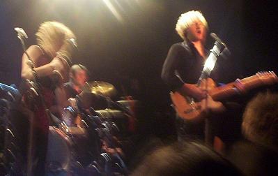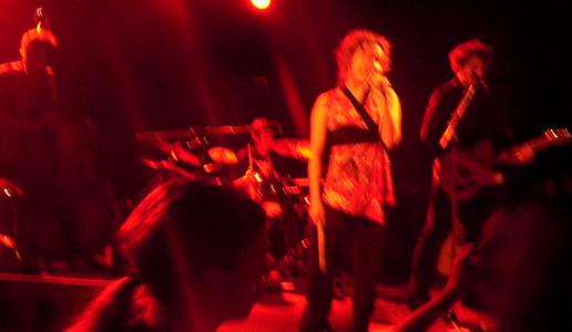 Le public accroche, et s'est largement densifié près de la scène, rien à voir avec les deux groupes précédents. Parfois même un peu trop proche du public, quand une fille dans le public va demander à Rachel de souhaiter le bon anniversaire à sa copine : drôle pour la première fois, moins drôle quand il y a un deuxième groupe qui veut la même chose, et nettement moins drôle quand le premier groupe chante "Joyeux Anniversaire" en plein milieu du concert, alors que la chanteuse allait commencer à chanter .. et qu'elle doit leur indiquer qu'elles ont un gateau d'anniversaire au bar pour les faire taire .. m'enfin .. ça s'passe quand même bien malgré tout, le public est assez fan du groupe, et beaucoup sont venus pour ce groupe !