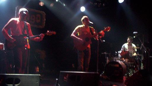 Salle agréable, après un long moment, Lugo rentre sur scène, leurs instruments enveloppés dans une sorte de moumoute blanche, en tout cas, le synthé. Ils arrivent sur scène, ils sont trois, l'un s'installe à la batterie, les deux autres à la guitare et à la basse. Dès leur première chanson, on remarque leur style, une chanson-rock qui ne se prend pas au sérieux. Déjà, la voix du chanteur me plait, elle n'est pas super bonne, mais agréable à entendre, et aussi à écouter ..