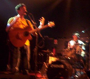 Niveau musical, les morceaux ne sont pas extraordinaires, mais parfaits pour une première partie, et pour passer une très bonne soirée. La basse est parfois suppléée par des riffes au synthé, souvent n'importe quoi. La guitare se joue avec du sample. La batterie-percus est elle toujours en marche. Les deux chanteurs chantent ensemble, peut-être plus pour le guitariste, mais l'autre a aussi une voix bien agréable .. bref, le groupe est bon !