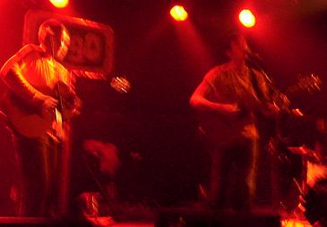 Puis les deux voix vont se mélanger sur le troisième morceau, et là, vraiment, c'est plutôt très très bon ! Le mélange entre les deux voix est un vrai petit régal, accompagné comme il se doit par une musique qui s'accélère. Et tout le long du concert, en fait, je vais largement apprécier les moments où les deux chanteurs vont chanter en même temps, celà donne une puissance du groupe qu'ils n'ont pas totalement lorsque l'un d'eux est muet ..