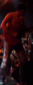 D'ailleurs, c'est la demoiselle qui participe le plus dans le groupe, en bougeant énormément sur scène, parfois devant le public, souvent penchée sur le public, parfois on la voit de profil, une fois, elle s'agenouille et se replie sur elle-même, dansant au milieu de la scène, ou allant se mettre derrière tous les musiciens dans l'ombre, quand Regis prend le chant, et qu'elle ne joue pas. Elle a un jeu de scène très remuant, contrairement aux autres, pas mal statiques en fait. Peut-être un petit peu trop ..