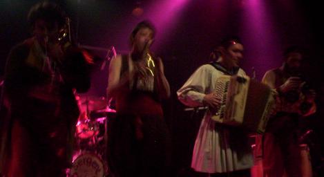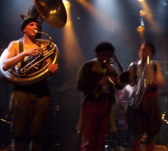 Si l'on rajoute un jeu de scène totalement loufoque, mettant en scène un défilé de mode, dont l'accordéonniste est le plus beau mannequin, simulant à merveille le défilé sous sa toge kazakh ou ouzbekh, selon les cas. A coté de lui, se trouvent les deux autres cuivristes, un peu plus discrets et ne participant pas beaucoup au jeu de scène.