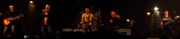 Donc on attend un petit quart avant que le groupe n'arrive. Et ils arrivent tous. Première remarque, le hautbois s'est coupé les tifs, et se présente maint'nant avec une coupe punky. Ils ne sont aussi plus que six sur scène, et ont perdu un guitariste qui chantait aussi à l'époque où je les avais vu, y'a un peu plus d'un an, mais puisqu'j'en avais aucun souvenir, ça ne me gênait pas du tout.