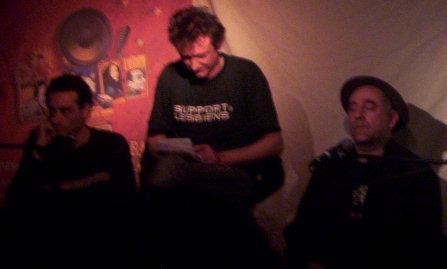Puis Denis Péan et Richard Bourreau viennent sur scène, et l'interview peut commencer. L'interview est un peu banal au début, l'interviewer demande à Denis de quel genre est le groupe Lo'Jo, si ils étaient un groupe world .. grondement, déjà, dans le public, et déjà un sourire un peu désabusé de Richard (il aura ce sourire désabusé dans toute l'interview ..).