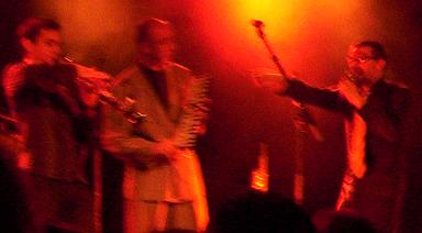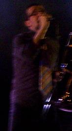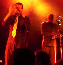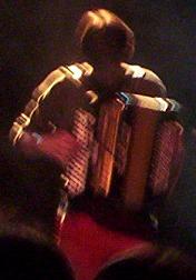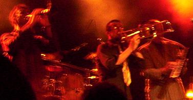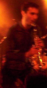 Enfin j'vais parler de deux trucs qui m'ont marqué dans le groupe. Tout d'abord, il y a eu une compétition entre deux musiciens, le clarinettiste, jeune et au regard bizarre (j'en parlerai encore dans le deuxième "truc"), et un plus vieux, qui joue d'un instrument dont j'ai encore paumé le nom, un mini piano dans lequel on souffle dans un tube. Bref, il y a eu un fighting entre les deux musiciens, j'ai trouvé l'idée belle, le rythme était très bon, mais je trouve que le fighting spirit n'a pas été très fort et très engagé, ce qui est dommage, car on aurait pu atteindre je pense des sommets de joie musicale sur ce trip ...