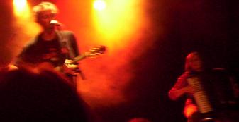 Si bien que le concert que j'ai vu là ne ressemble pas du tout au concert que j'avais vu et apprécié en mai dernier, le groupe n'est plus constitué du chanteur guitarriste, du contrebassiste, d'un batteur, et enfin de la demoiselle à l'accordéon .. j'crois que c'est tout, j'crois n'oublier personne. Aussi il y a encore le panneau Rue d'la Gouaille sur scène.