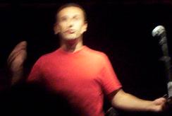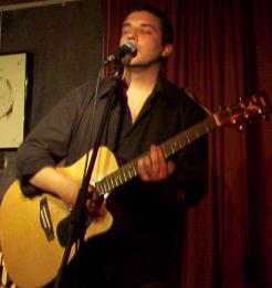 Et il joue bien de la guitare, même si parfois elle glisse de son épaule, il la reprend en laissant traîner un rire nerveux, car nerveux, il l'était largement, beaucoup trop. Très mal à l'aise sur scène, c'est sa première scène, il réussit quand même à chanter, et le fait plutôt bien, son set est plutôt très bon, court, puisqu'il ne va durer que cinq six chansons, plus deux embauches qu'il fera assez pour dire qu'elles sont pas mal.