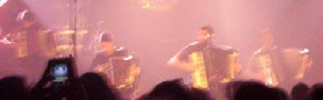 Les quatre frangins arrivent sur scène sur les acclamations du public, et les quatre se présentent avec des accordéons, ça pète de voir quatre accordéons sur une même scène, et d'entendre Rue de Panam chanté par le public, c'est quand même un sacré grand moment, énorme moment .. pfoulaaaaa .. En fin de chanson, les trois frangins de Fredo prennent leurs instruments plus habituels (Alice perchée sur l'estrade pour la contrebasse par exemple) pour terminer la chanson sur des notes un peu plus festives, qui font bouger un peu plus le public.