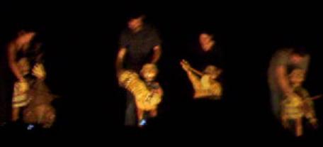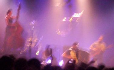 Le concert est bien avancé, et j'ai du oublié quelques chansons, honte à moi. Et un drap est dressé derrière eux, et c'est au tour de l'arménienne Jeanette de se faire entendre (avec quelques valses sur le drap) avant que les Ogres la chantent, l'Arménienne. On sent l'Azadution venir, mais non, il ne vient pas encore.