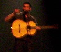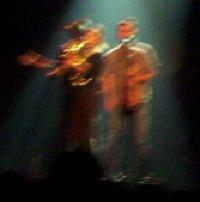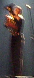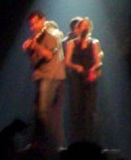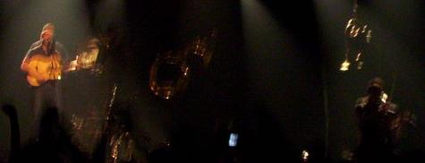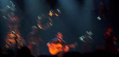 Puis les Ogresses commencent à chantonner {Azadution} en Arménien bien sûr, chanson qu'est suivie par la magnifique Flamme and 'Co .. longue chanson très douce chantée par Fredo, en duo avec Sam à la guitare, les deux filles étant un peu moins présentes sur cette chanson .. c'est encore très joli, encore un superbe moment, encore un très grand spectacle des Ogres, même si ... raaah quand même l'ambiance de Sablé n'est pas là, y'a pas la même sensibilité dans le public ... y'en a même un qui s'est écroulé devant nous, ivre qu'il était .. mouarf ! Pas cool !