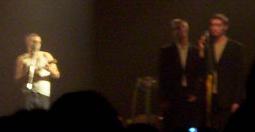 Et ils vont passer devant le micro pour venir chanter devant le public, qui va s'assoir, alors qu'ils vont chanter accoustiquement. Au début, on entendait pas grand chose, les gens causaient, mais après, on entendait mieux le début des Voyageurs, de la Femme du Guerrier, et d'autres vieilles chansons des Ogres (toutes plus belles les unes que les autres), on entend bien Fredo chanter, un peu moins les autres jouer.