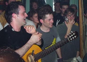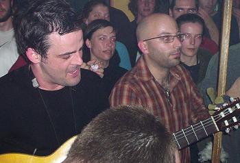 Grosse ambiance dans la salle, et grosse chaleur, lorsque le concert se termine (car je n'ai plus grand chose à raconter en fait, honte à moi) (ah si, Steban joue aussi de la trompette, j'viens de m'en souvenir), ils nous annoncent qu'ils vont venir dans le bar jouer entre nous, en accoustique, je le savais, mais ça fait plaisir, et surtout, on se demande : où vont-ils aller ?