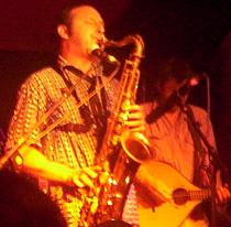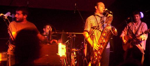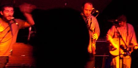 Puisque tous reviennent et jouent très fort pour la suite, ça bouge pas mal, c'est très joli, le chant se compile parfaitement, on en profite beaucoup ! Puis les attitudes du chanteur (toujours dans son trip), du saxophoniste (toujours un sourire surprenant entre les chansons), et du violonniste (toujours un sourire quand il joue, genre "j'adore jouer ce morceau, j'prends mon pied") nous incitent à les rejoindre dans leur trip.