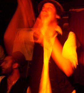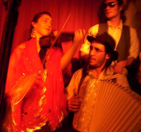 Et hop, on la fête en chanson, et encore en musique tzigane, et encore en chanson, puis va venir le moment de la reprise du No Smoking Orchestra : Djindji Rindji Bubamara, pendant laquelle je vais pouvoir chanter en même temps qu'eux, ce qui fait bien plaisir ! Puis une autre chanson fera la part belle à Julie (Lili, à Poiiiiil, crions-nous), elle chantera seule (elle a la voix d'une gitane, et même le physique, en serait-ce une vraiment ?), avec une voix aigue et qui rentre totalement dans le trip des musiques de l'est.