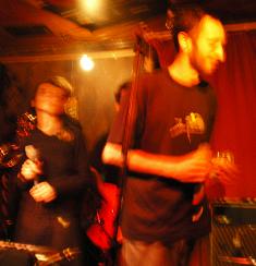 Arrivé sur place, pas glop, il n'y a vraiment pas grand monde ici, le bistrot ne fait largement pas complet, dommage pour le groupe, qui vient de Lyon. Et donc, quand les six Semtazone montent sur scène, il y a seulement 5 ou 6 personnes devant la scène, et deux seuls debout devant, lucie et moi.