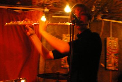 On avait vu tout le monde jouer tranquillement, mais il est vrai que Lison se faisait toute discrète devant nous, sur la droite de la scène. Avec le P'tit paumé de la gare, on la retrouve, elle et sa flûte, elle est magnifique encore cette chanson, que prend en micro Charlie, et puis elle dure la chanson, elle dure, et ça s'enchaîne .. pfiouuuu, ils sont très bons ces petits Semtazone .. mais bon, dans un public totalement absent, c'est pas glop du tout ..