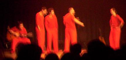 Mais bon, les cinq chantent bien, chantent avec des voix différentes, mais en fait, c'est très dur de les reconnaître, car il chante aussi de plusieurs voix chacun, tous partent facilement dans les aigus ou dans les graves, bref, ils sont cinq et ne pourraient pas être quatre, tous participent au groupe, ils sautent partout, ils tournent en rond, ils changent constamment de place, bref, leur spectacle est préparé dans tous ses mouvements. C'est du théâtre, le public rie sur des blagues parfois pourries, parfois tellement vraies, nous rappellant notre jeunesse, ou d'autres histoires que tous peuvent vivre ...