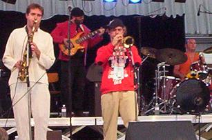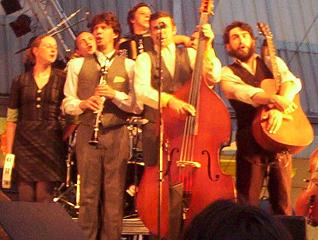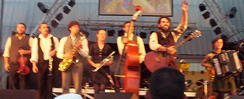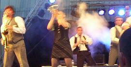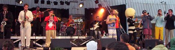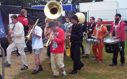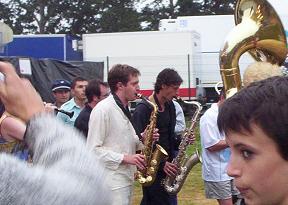 Enfin, pour finir le concert, ils vont descendre sous la pluie avec nous, pour deux ou trois morceaux au milieu de la foule, ce n'est pas un moment fantastique, le site du festival n'étant pas forcément bondé, mais tout de même, c'est très agréable ! En voilà une bonne petite fanfare originale et sympa !
