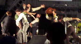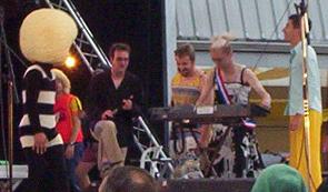 Tout le concert se fait dans la bonne humeur, avec de nombreuses chorégraphies totalement non improvisées, mais totalement non connues, par aucun d'entre eux, ils se marrent, vont se moquer du clavier, ou encore jouent en solo, tout ça avec une musique toujours festive et agréable à bouger ! Ah oui, aussi, à un moment, l'un du groupe est venu s'amuser avec la caméra qui filmait le festoch pour le transmettre en écran géant .. pendant 2 minutes, il va filmer n'importe quoi, très drôle :).