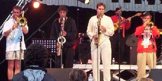 Ce qui est assez remarquable dans ce groupe qui va nous distiller une petite heure de bonne musique, parfois bretonne, puis passant à la fanfare cuivrée plus habituelle, c'est la différence d'âge entre les joueurs de binious et les joueurs de cuivre, la moyenne d'âge des cuivrés est bien plus basse que celle des binious, enfin des bombardes du mozambique, selon le site ..
