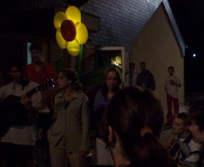 Le festival devient payant, et pour contrôler les billets, on met les gens dehors en suivant la guitarre du chanteur de Bats ta Via (cf Framboiziks 2003), et on se retrouve dehors avec un décor fleural, sous lequel jouent les Bats Ta Via. Ils vont faire leurs trois plus gros morceaux dehors, et l'ambiance sera sympa, même si on n'entend pas grand chose. Ils termineront leurs morceaux lorsqu'on fera rentrer les gens à nouveau dans la salle, moment pendant lequel on profite pour dîner...