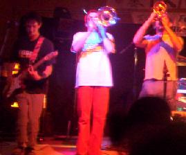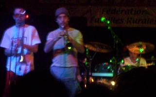 Le rythme est quand même très souvent bon, les cuivres font un énorme travail, surtout le petit trombonniste qui saute partout, mais vraiment partout, il est tout énervé, et il donne vraiment l'ambiance dans le concert, on saute sous les sons de son trombonne, et il fait tout pour profiter du concert, c'est assez étonnant, et j'm'amusais à le regarder. Enfin, en fin de concert, il est descendu jouer dans le public, tout seul, en dribblant les gens ..