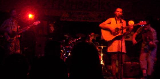 La musique est sympa, ce n'est pas encore terrible, mais c'est vraiment pas mal, ils ont des trips intéressants, essaient de mettre l'ambiance dans cette salle froide, les gens assis sur une grande partie de la salle, un bruit de fond derrière, bref, ils font de leur mieux, et ils sont pas mauvais.