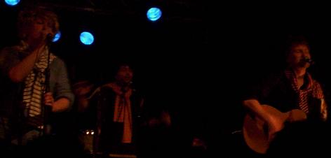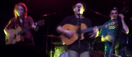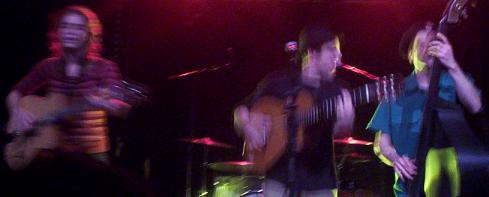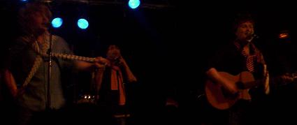 Entre temps, la musique est jolie, les textes sûrement recherchés et amusants, j'suis pas doué pour les écouter en concert. L'ambiance aux Framboiziks était bonne, très bonne, très surprenant ici aux Framboiziks, parce que normalement les premiers groupes ici, ça ne remporte pas un franc succès, là oui. Pas mal.