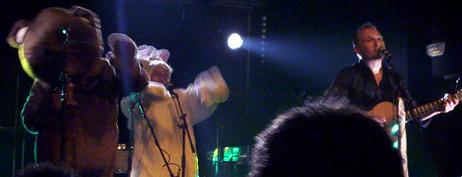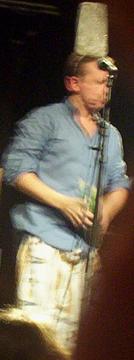 Alors qu'on applaudit fortement, le contrebassiste vient devant nous, nous demande de nous taire .. puis .. il se met à jouer de la contrebasse, bizarre bizarre j'ai dit .. bref, le groupe s'amuse maintenant sur scène, le jeu de scène devient amusant, avec le chanteur qui réagit au public, plus qu'il ne se moque (j'aime bien quand on se moque, mais là, c'était trop vite, un peu trop forcé).