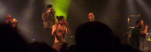Dès les premières minutes, j'ai commencé à douter sur mes sensations sur le concert, j'ai même pas accroché au Jah Jah Jah Rastafaraïï qui n'a d'ailleurs pas été souvent dit. Je ne pourrais pas expliquer pourquoi je me suis endormi (enfin, c'est vite dit, j'ai quand même pas mal dansé, le rythme ne me laissant pas du tout de marbre, mais "normalement" j'en profite plus), voilà, donc je laisse là le résumé du concert des Skatalites ... en précisant qu'ils vont faire venir une chanteuse pour quelques morceaux, et j'avoue que ces morceaux ne m'ont encore moins plu, c'était pas leur soirée pour moi .. peut-être aussi que leur passage après les Teuhpus n'est pas très conseillé lorsque le rythme retombe comme ça, d'un coup, surtout lorsque je suis fatigué ... aussi le chapiteau est devenu assez étouffant, et j'ai été plutôt mal à l'aise corporellement, mal au ventre.