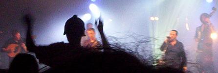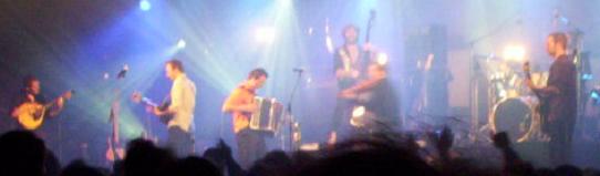 Ils sont tous là sur scène, et la foule totalement bien présente devant, j'peux m'approcher, et percevoir encore une nouvelle chanson, mais franchement, je ne peux pas trop dire quelle chanson. On repère tout de suite que Simon est en forme, que William danse toujours sur les chansons, qu'Olivier le banjoïste est loin, pfoulaaaaa, loin de moi, et que Christophe est pas comme je me rappellais qu'il était .. puis Romain a le bec sur sa clarinette, Fred est au taquet sur l'accordéon, bref, tout va bien, le groupe va bien, moi j'allais mieux ..