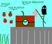 Donc Prince Haricot devait juste calmer le jeu, et pour cela devait éviter tout scandale, c'est à dire, empêcher Voisine Haricot de nuire à sa réputation, et cela il comptait bien le faire. Il connaissait tout de Voisine Haricot, et il n'eut pas de mal à la faire inculper pour pire qu'elle l'était auparavant. Elle risquait désormais une peine capitale, voire une peine de mort. Nous allons passer en silence les crimes pour lesquels chuta Voisine Haricot, car cela n'importe peu dans l'histoire, pis cela rendrait l'histoire encore plus chiante qu'elle ne l'est déjà. On peut juste dire que ce sont des crimes de moyenne importance, qui ne sont graves que par la quantité dont elle en a commis. Bien sûr, Prince Haricot avait rajouté à la liste les crimes que lui avait commis, qui étaient bien plus graves et bien plus nombreux que ceux commis par Voisine Haricot, mais ça personne ne le savait, sauf quelques rares exceptions, qui préféraient se taire, plutôt que de risquer une peine eux aussi. C'est que Prince Haricot commençait à faire peur en tant que monarque sur le champ.