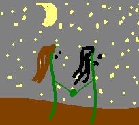 Princesse Haricot cria de stupeur, et s'étala de tout son corps sur le sol. Brigand Haricot lui demanda qui elle était. Visiblement il avait la tête dans le cul (oui les haricots ont un cul dans mon histoire) mais il la reconnut vite. Il lui demanda : "Comment tu sais où je crèche ?" et elle lui rétorqua : "je t'ai suivi". Étonné de ce qui a bien pu passé par la tête de Princesse Haricot, il lui demanda pour se renseigner : "Tu es bête ?". Elle le regarda tout étonnée .. il continua : "Pourquoi tu as suivi un brigand ??". Elle regarda ses gousses, toute penaude, c'était vrai ce qu'il a dit, elle est conne parfois c'est pas croyable. Elle lui dit qu'elle n'avait nulle part où aller, donc elle a suivi c'est tout. Brigand Haricot lui proposa de quitter sa cabane alors. Elle refusa énergiquement lui disant qu'elle ne voulait que passer une nuit, c'est tout, pas plus. Quelqu'un frappa au drap-porte, juste à temps pour que Brigand Haricot ne puisse refuser l'offre de Princesse.
