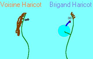 Comme dans tout dessin animé, brigand haricot sourit à la jolie voisine haricot, mais contrairement aux dessins animés, il lui décocha une torgnole, qui la mit par terre. Il lui dit : "Putain mais t'es trop conne, tu peux pas savoir comment j'ai dû courir pour avoir cette putain de goutte, espèce de sale traînée" (promis c'est une histoire d'amour). "Traînée moi ? Qui c'est le gros salaud qui m'a donné à Brute Haricot pour se sauver d'une situation ?". Brigand Haricot glugluta, il avait oublié cette mésaventure. Maintenant il s'en rappelle (*effet flash-back*) : il y a un comité de brigand dans le champ, le chef étant brute haricot, un haricot brute et sanguinaire. Hier, dans la soirée, brute haricot est venu voir brigand haricot pour lui demander brutalement de quel droit il osait brigander sans son accord. Alors là Brigand Haricot s'est un peu excusé, puisqu'il avait la frousse, puis il a indiqué à brute haricot l'adresse d'une fille pour qu'il puisse profiter d'elle : "c'est juste à côté Ô maître". Voilà pourquoi voisine haricot est un peu énervée. (*Fin effet flash-back*).