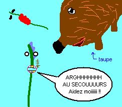 ... et éphémère, car manque de chance, Sultan Haricot et toute sa bande se sont faits attaqués par une taupe. L'odeur de l'orgie l'a attiré, et puisque c'était en pleine campagne, il n'y avait pas de protection anti-taupe, et elle avait surgit et massacré ces sultans veufs. La nouvelle vint sur le champ le jour auquel Sultan Haricot était attendu. Soeur Haricot était dans les bras de Voisine Haricot, elles étaient entrelacées l'une dans l'autre, quand elle entendit les clameurs de la foule, proche du palais. Elle regarda par la fenêtre et vit Prince Haricot, afflubé de l'habit de sultan. Il se passait quelque chose et Soeur Haricot quitta tout de suite Voisine Haricot pour aller se renseigner. Elle fondit en larmes quand elle apprit la mort de son père, pour deux raisons, c'était quand même son père, il fallait pas déconner !! et aussi parce qu'il n'y avait plus aucune chance de sauver Voisine Haricot, et cela lui monta au cerveau et son esprit se couvrit de haine envers Prince Haricot, qui est passé en l'espace de peu de temps de brigand à sultan.